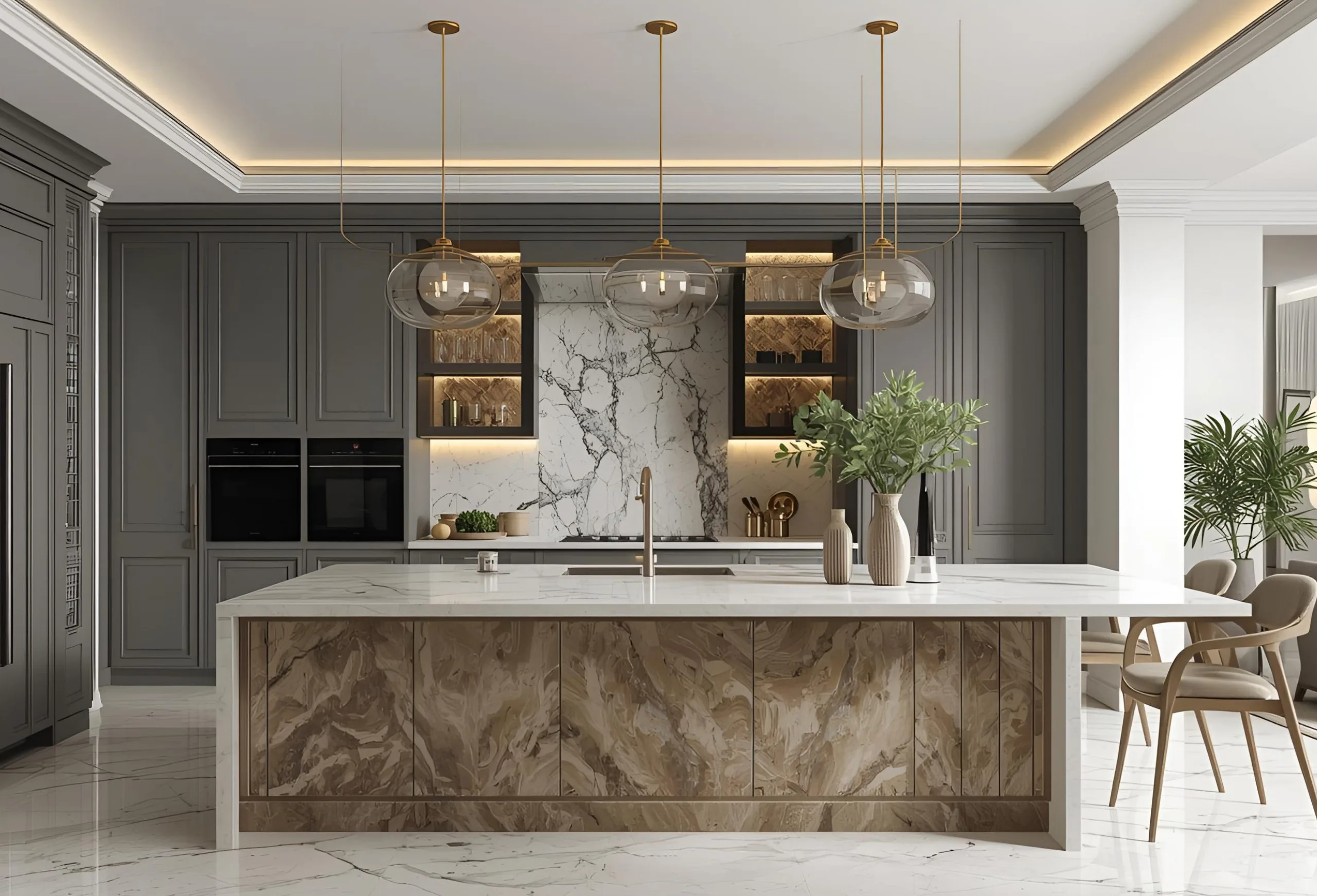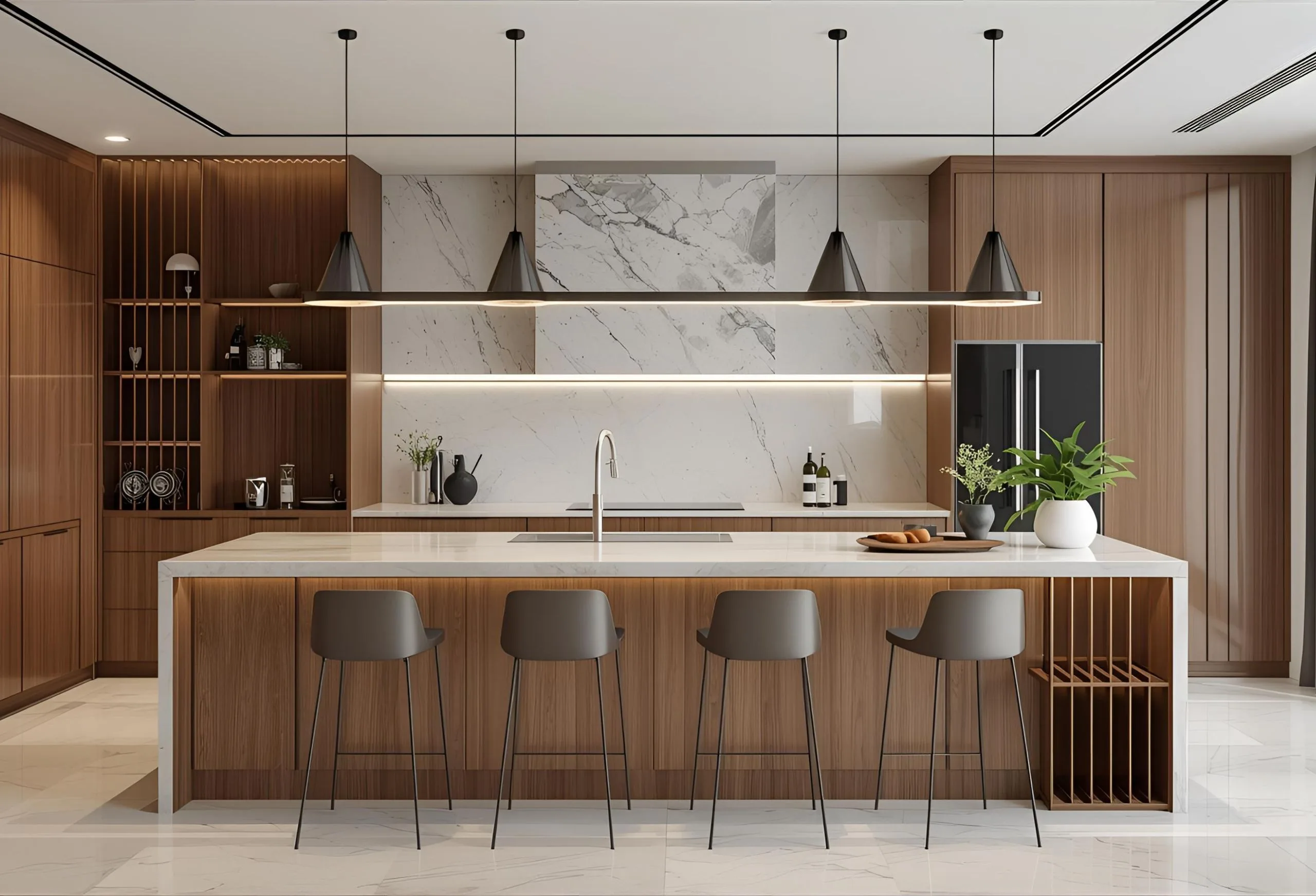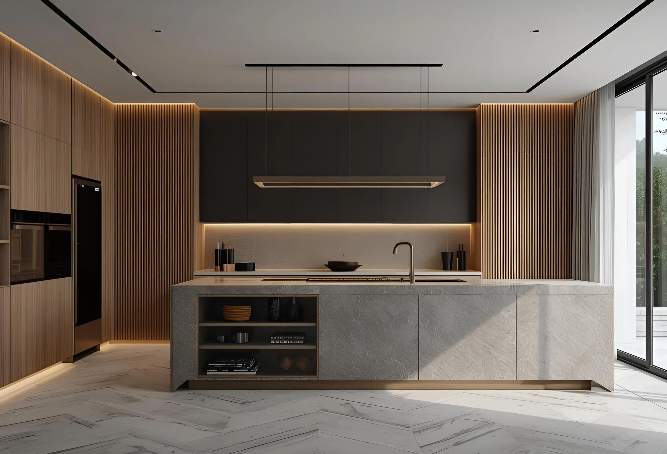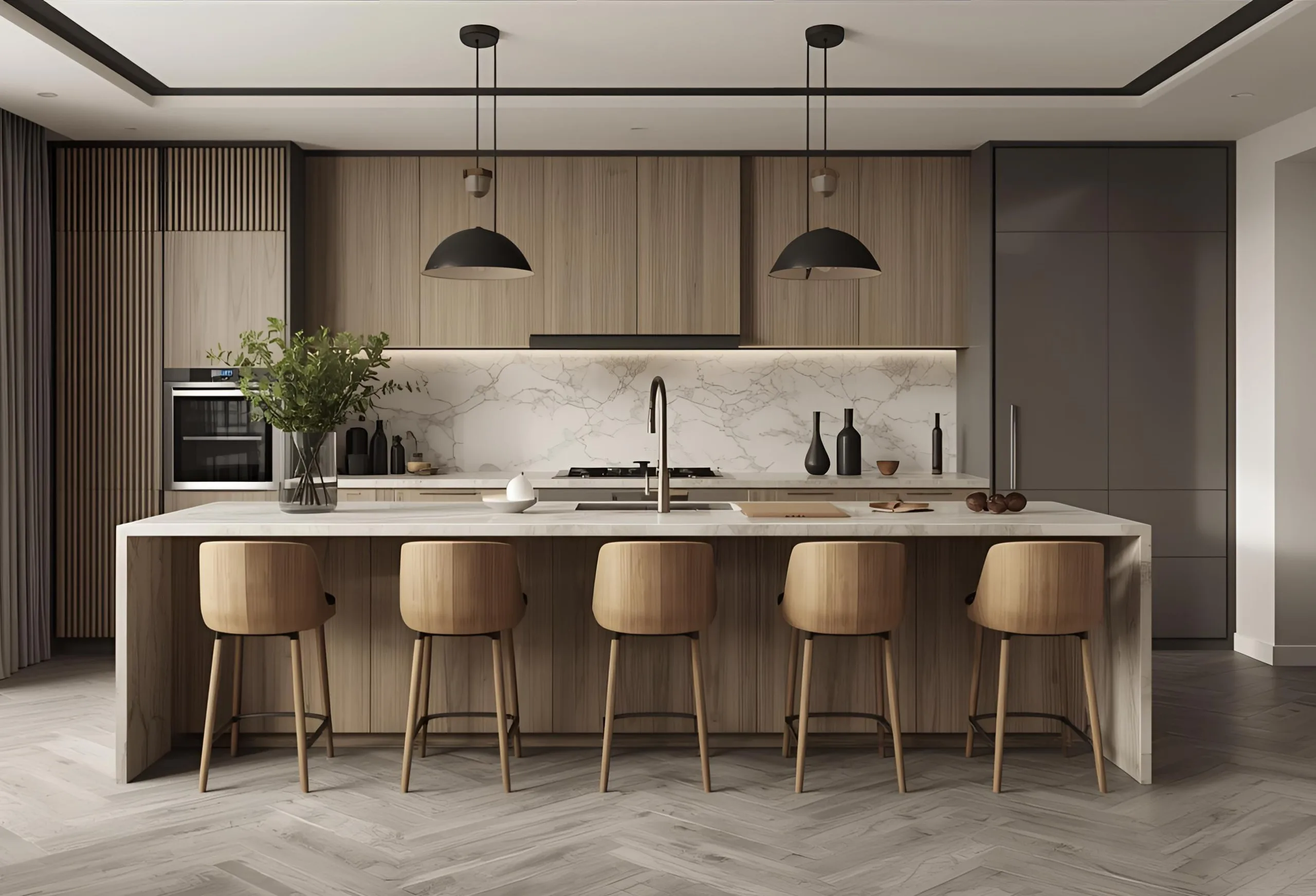 A refined blend of bold textures, elegant tones, and premium materials that create a sophisticated, high-end kitchen experience.
