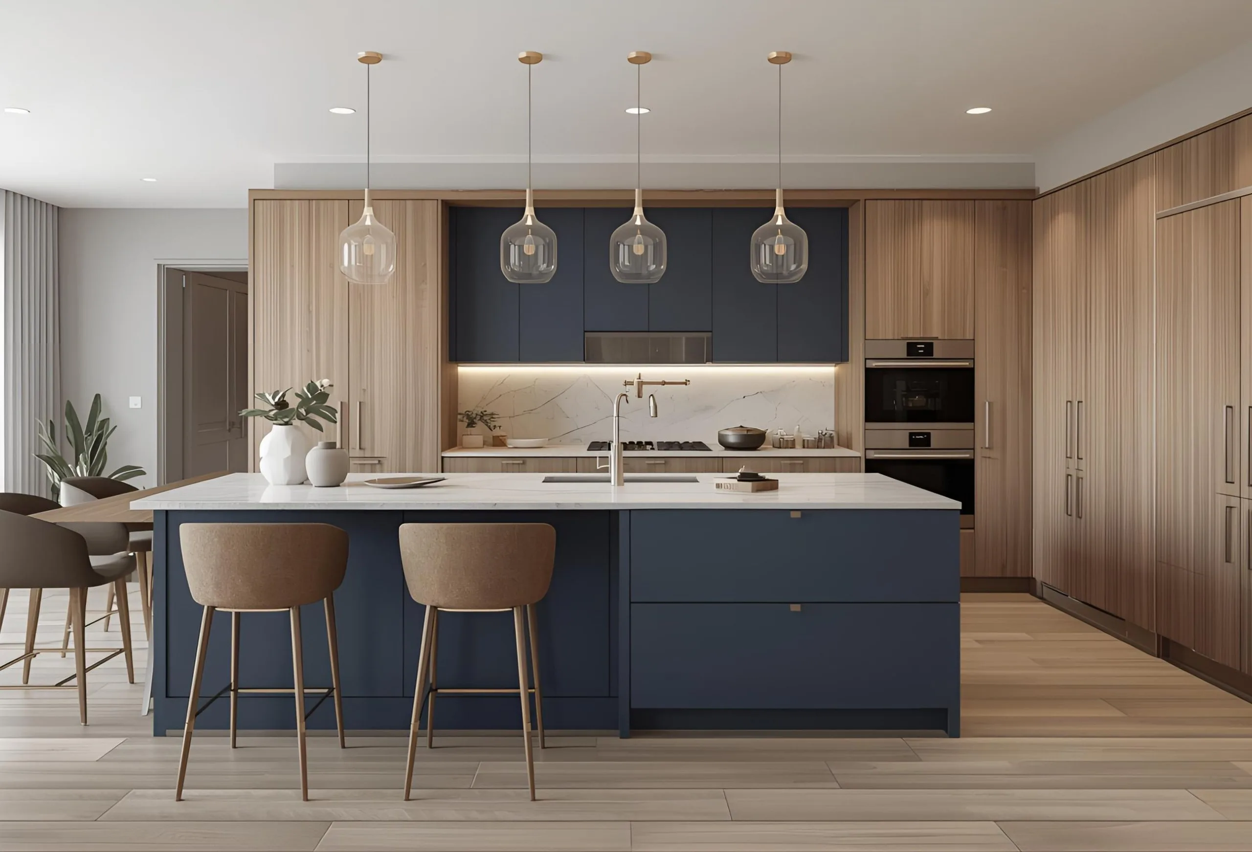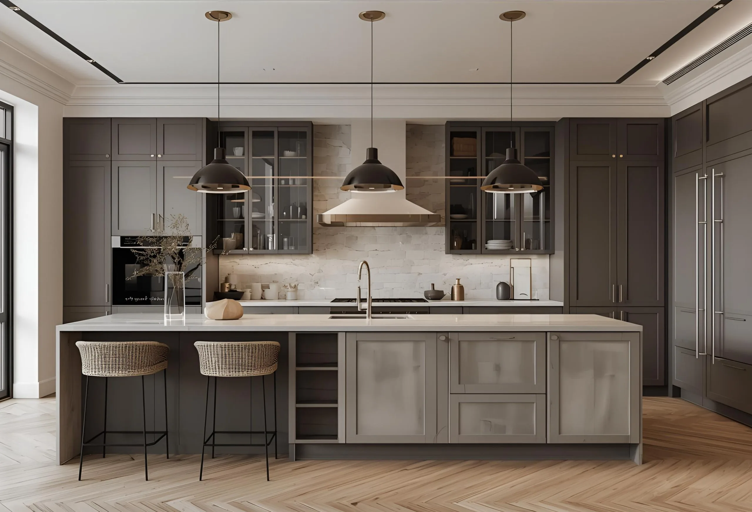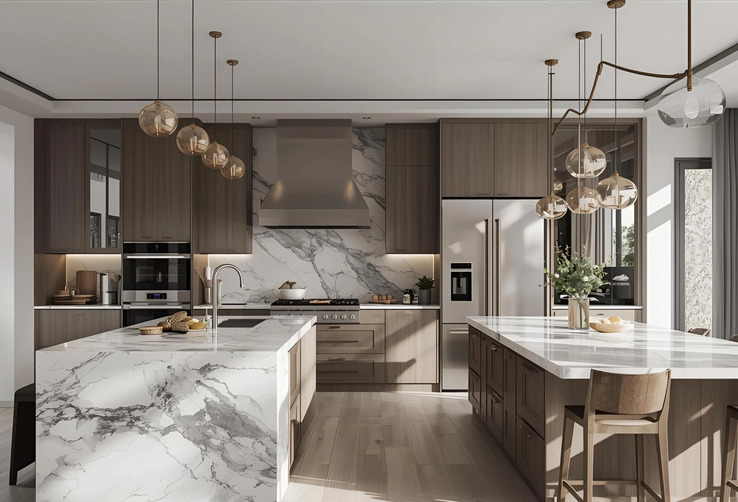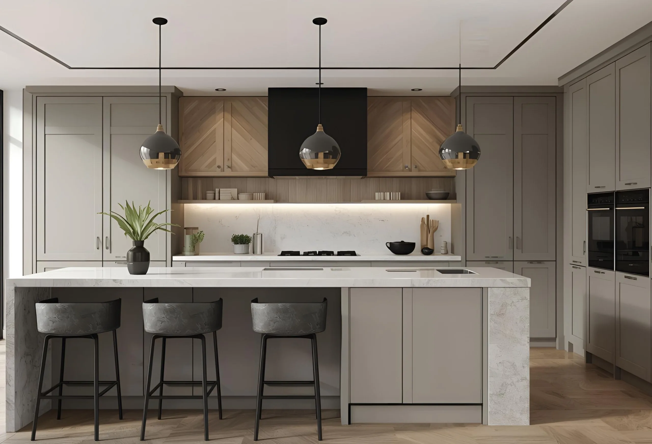 A refined blend of bold textures, elegant tones, and premium materials that create a sophisticated, high-end kitchen experience.