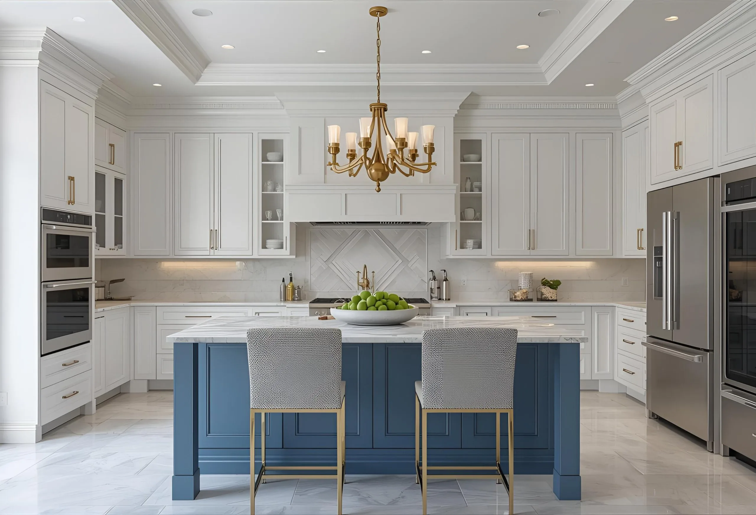 - 🪨 Imported Stone & Designer Countertops: Luxury quartz marble or sintered stone surfaces with striking elegance.