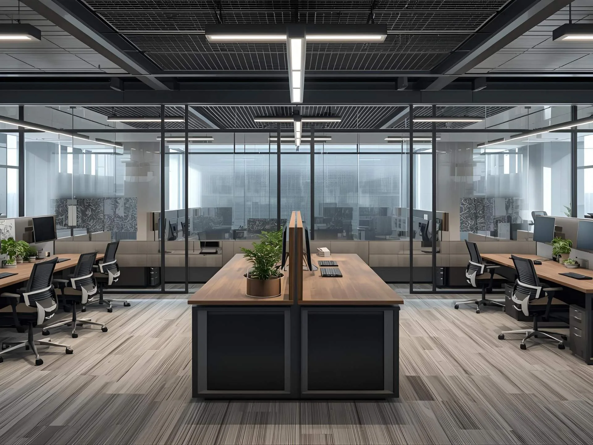 Yes. We create 3D renderings, mood boards, and material samples so you can visualize the final office layout before execution begins.